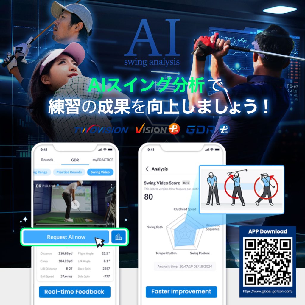 GOLFZONグローバルのアプリをダウンロードされている方はご自身の映像をアプリに保存して携帯で確認することも可能です。